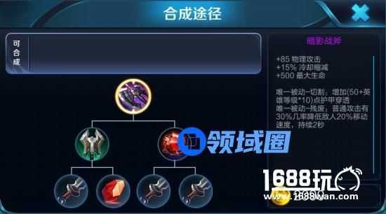 暗影战斧的属性提供攻击力、冷却缩减以及最大生命,被动则提供护甲穿透和残废减速。