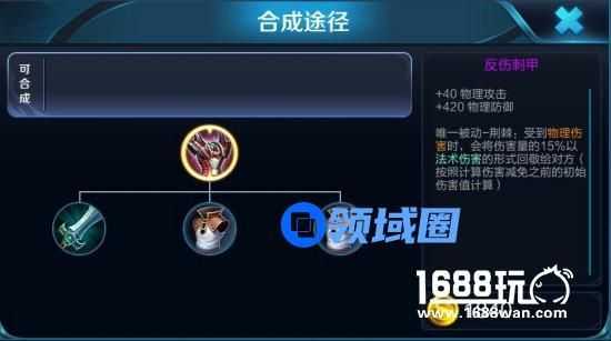 反伤刺甲不仅提供了40点攻击力和420点物理防御,它的被动还会反弹伤害量15%的法术伤害。
