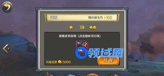 武将在获得时可分为1星、2星、3星武将。武将最高可升至5星。升星需要消耗该武将的大量信物。