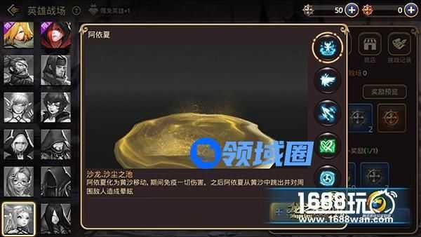 沙龙.沙尘之池:阿依夏化为黄沙移动,期间免疫一切伤害。之后阿依夏从黄沙中跳出并对周尾敌人造成晕眩。
