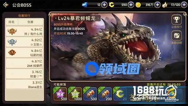 每天我们进入公会BOSS后左边还能看到我们的伤害排行一目了然,所以希望展示自己风头的玩家一定不要错过在最短的时间内打出成吨的伤害哦。