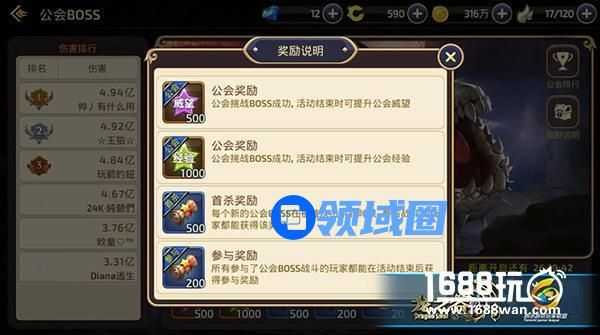 还有公会挑战公会BOSS成功所奖励1000点经验,用于活动结束时提升公会经验。