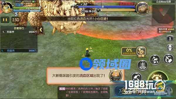 还有一点就是公会BOSS的技能问题,公会BOSS是不变的,一直是一只巨大的地龙。等级提升技能也不会改变,一个是翻滚。玩家在看到地龙四脚朝上时就应该停止攻击,赶快进行躲避。地龙的翻滚是成直线的,所以不要担心躲在一旁还会受到波及。二个就是大范围的流血区域,这个区域就不要长时间站在里面了,持续掉血可是掉得非常厉害的。可以说这是地龙攻击最强的技能,虽然不是爆发,但是胜在持续。大家切记一定要远离地上红圈的范围。