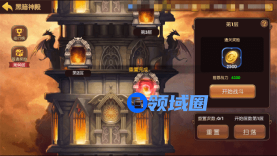 玩家每天都可以通过挑战或扫荡黑暗神殿中获得金币奖励,所到达层每上升一层,都可以提升2500金币每日获取量。金币奖励的总量需根据玩家挑战到达层数来决定。