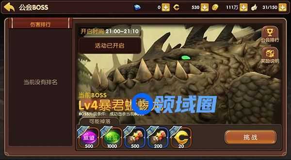以上所有的奖励将会随着公会BOSS的级别提升而小幅度的提升奖励。每天我们进入公会BOSS后左边还能看到我们的伤害排行一目了然,所以希望展示自己风头的玩家一定不要错过在最短的时间内打出成吨的伤害哦。