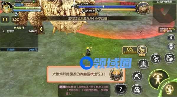 还有一点就是公会BOSS的技能问题,公会BOSS是不变的,一直是一只巨大的地龙。等级提升技能也不会改变,一个是翻滚。玩家在看到地龙四脚朝上时就应该停止攻击,敢看进行躲避。地龙的翻滚是成直线的所以不要担心躲在一旁还会受到波及。二个就是大范围的流血区域,这个区域就不要长时间站在里面了,持续掉血掉的非常的厉害。可以说这是地龙攻击最强的技能虽然不是爆发,但是胜在持续。大家切记一定要远离地上红圈的范围。