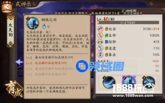 一技能风袭:普攻造成100%伤害,没有特点。二技能钢铁之羽:被动技能,满级提升15%的攻击加成和15%的暴击伤害,并可免疫一次硬控,免疫硬控这个特点是大天狗能够反手控制的核心技能。注意不能免疫减防、减疗等软控。