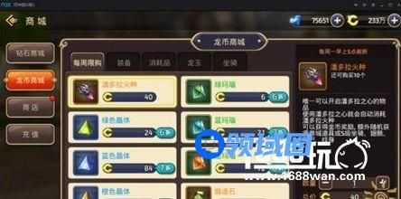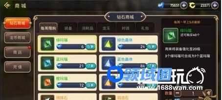 钻石是通过用人民币充值才能得到的,能用于游戏内的绝大部分消费,在钻石商店里购买强化材料也不例外。钻石商店跟龙币商店一样,每周都有限量销售的材料,这个是必买的,毕竟能省下部分钻石。