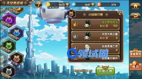 点击【天空竞技场】就能进入到玩法界面了,还能看到自己属于哪个分段哦,然后点击【开始比赛】就能进行对手匹配了,是不是很方便呢~