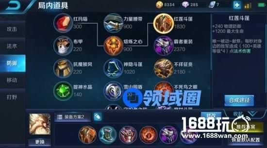 出装推荐六神装:红莲斗篷、抵抗之靴、反伤刺甲、不死鸟之眼、霸者重装、暗影战斧