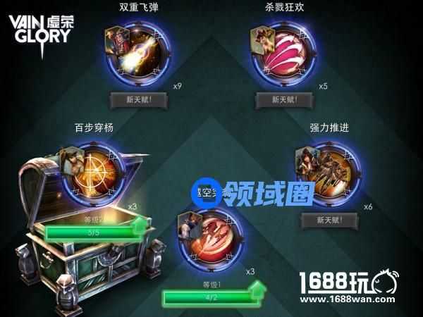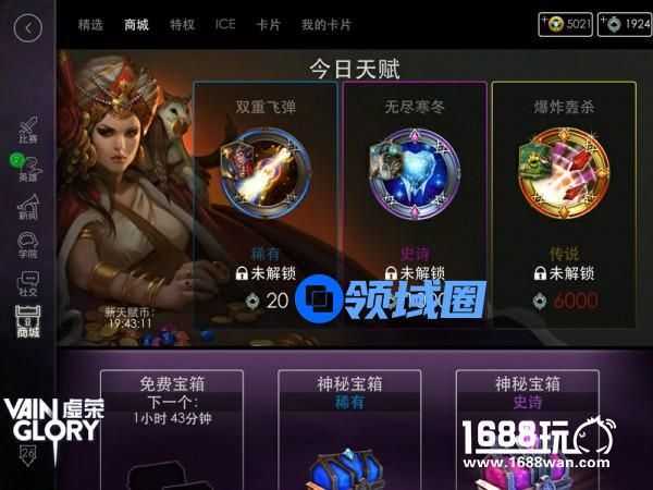 除了上述的任务宝箱,玩家还可以使用游戏内的免费货币——荣耀,直接在商城中购买天赋币。《虚荣》每天推出3款不同等级的天赋供玩家使用荣耀购买。每天可供购买的天赋币数量为:稀有天赋,60枚天赋币;史诗天赋,10枚天赋币;传说天赋,4枚天赋币。