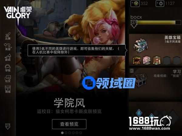每天只需使用五名不同的英雄进行游戏,即可免费开启宝箱,获得这五名英雄的天赋币(数量不等)。以闪电战为例,玩家使用5名不同的英雄进行5局闪电战,不论输赢,最多25分钟即可开启宝箱,可谓游戏中目前收益效率最高的玩家任务。