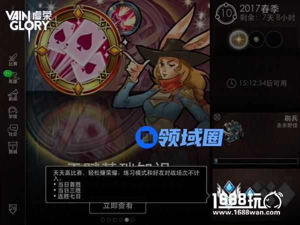 2)每日首胜、三胜,七天连胜,可额外获得大量荣耀。