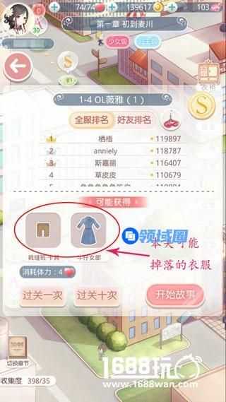 另外在奇迹暖暖中,每个关卡通过之后,将会固定掉落一些衣服,点开关卡后,就能看到这一关有可能掉落的一些衣服。