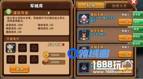士兵的属性增强方法很多,还有一种最快最有效的方法就是升级建筑和建筑里的科技,那么该建筑的所有士兵都会得到一定程度的属性增强。后面更是有指定士兵的专精可升级,针对性的升级士兵的各种属性。俗话说:没有丑的女人,只有懒的女人。在《凯旋之门》里同样是如此,没有弱者,只有懒惰者!