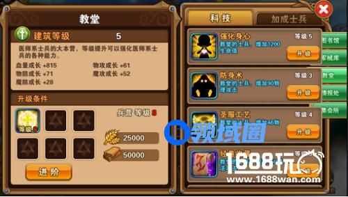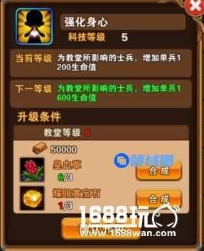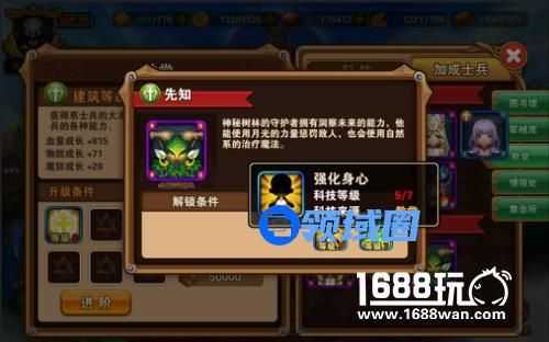 每个建筑都有许多科技可以升级,这些科技可以给本建筑士兵加成属性,还可以解锁相应士兵。当我们想要解锁某个士兵,则可以点击该士兵,查看解锁条件,如下图: