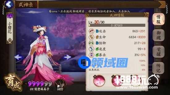 樱花妖:御魂带的是地藏像,能够保证队伍不被河童大招打残血。即使技能不是满级也可以,下面会介绍带樱花妖的主要功能。