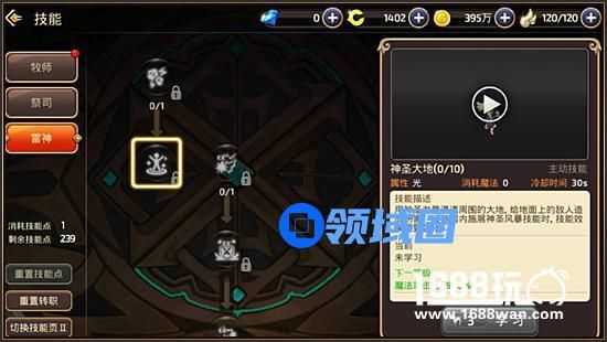 PVP当中他更是一个战略性意义十足的技能,不但可以限制对手的走位,还可以在控制住对手的时候,当做连招来使用,将对手限制于神圣大地上,承受无尽的打击。而它另一个作用就是当你在神圣大地上使用神圣风暴的时候,可以强化它的效果,神圣风暴是一个小范围召唤光柱进行攻击的技能,但是由于表现力不足,一般玩家都是不选择佩戴那个技能,所以这个优点我们不作过多的评论。【50级】