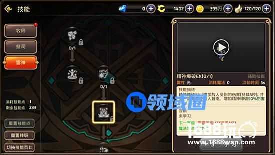 我们分析一下他的作用,在副本当中,怪物是不会有太多的AI去躲避玩家的攻击。那么,雷神在PVE当中,使用主要输出技能前可以用精神爆破EX先上一个Debuff,然后进行一波爆发,可以提升自己的输出。在PVP当中,想要用这个技能输出,唯一的条件只有在控制住对手之后,非常苛刻,雷神本身自身能力就不属于控制能力很强的类型,只能说这个技能是有比没有好,但是有了也作用不大。【60级】