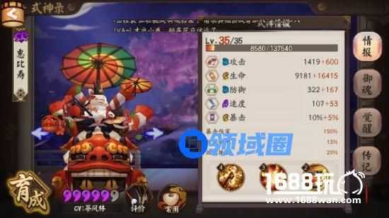 推荐式神5-惠比寿(御魂推荐:地藏四件套+生命两件套,二号位速度,四号位抵抗或生命加成,六号位生命加成)