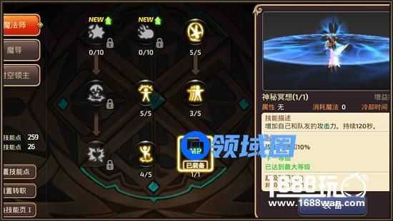 神秘冥想:一个辅助型技能,增幅全队的攻击力,增幅量为10%且持续时间能达到120秒而CD只有60秒,一个无缝连接增益型状态技能,在队伍中如果有一名时空领主就等于全体队员都能增加攻击力,对于物理系英雄的增益是不言而喻的,作为团队的爆发输出同时兼备攻击力增幅,从而造就了时空领主在PVE中的必备性,是一个优秀的辅助技能。