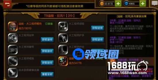 6、装备,这个最重要,越往后,装备提高战力的加成越多,例如T9和T10差100万,刷地图工坊尽量刷掉宝率高的图。好了以上是我的一点见解,把资源投到以上几个方面,那战力肯定高。