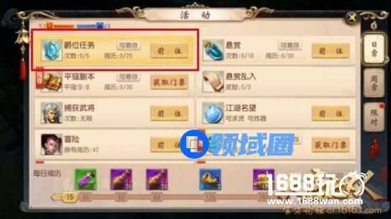 活动查找:点击面板活动界面-》找到爵位任务。每天可以领取5个爵位任务