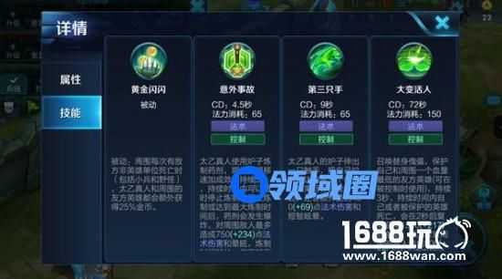 二技能的控制效果不如一技能,但二技能的位移属性,可以帮忙太乙真人有效的追击和撤退,战斗时建议作为一技能的辅助技能使用,通过位移的效果有力的追击敌人,再释放一技能控制住更多的敌人,完成辅助的任务。二技能的位移可以利用野怪和小兵穿墙,在对战中合理利用好其位移,可以让太乙真人在战斗中更加游刃有余。