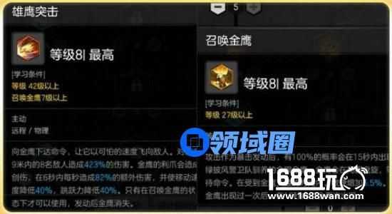 召唤金鹰与雄鹰突击,前面我们说到过这两个技能的组合之下可以配合打出一个伤害的小爆发,触发被动之后的金鹰可以给我们带来6.5%的被动敏捷加成,但是由于金鹰只有18秒才能出现一次,所以这里推荐给大家一个小技巧,当金鹰限时不足3秒时再用英雄突击来击发这样一个技能组合,力求敏捷增加之后的伤害收益性最大化,而不是在出现金鹰之后就迅速释放雄鹰突击,这样的话会让我们的被动技能收益性减低。