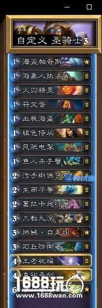 阿曼尼和库卡隆的输出对于中速卡组来说基本上是噩梦,但凡有一个解不掉就会被你带走,就算要解你也要复出不小的代价,任务贼没有背刺很可能要交冲锋和脸去解,傻子牧要交沉默都会很伤骑士5级-2级卡组这套骑士的思路源自于XIXO上个版本的一套三教九流骑,大概在去年11月份左右的一套卡组,有幸那个赛季用那套卡组上了传说。在5级左右的分段,很多人都想通过抄一套鱼人骑和快攻德去上传说,这导致的结果是很多卡组很难发挥,即便是我冲上传说的那套节奏战在这个分段也很难受,所以这就不得不安利一套个人改版的三教九流骑。