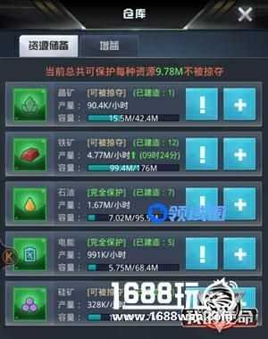 这个是内矿等级在34级左右的效果,如果油矿跟电矿开增益,而铁矿不开增益,则自产的资源都在2m左右。