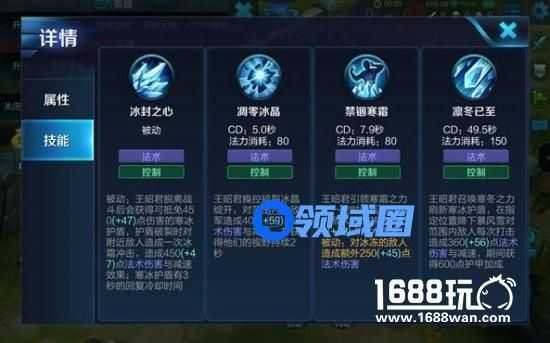 解析:该技能有一定的施法延迟,非常考验玩家的预判能力,冰冻敌人后无论是普攻还是技能命中敌人都会造成额外的法术伤害。若想提高该技能命中率,可以先使用一技能对敌人造成减速效果,敌人在减速状态下想躲开该技能范围就没那么容易了。被敌方刺客突进时,可以在自身脚下释放该技能,冰冻敌人后可以选择逃生或衔接大招进行反杀。连招技巧王昭君的基础连招为:一技能+二技能+大招。先手使用一技能可以对敌人造成减速,从而提高二技能的命中率,被二技能冰冻的敌人在承受大招的持续伤害时,可以造成额外的法术伤害。这套技能打出的爆发伤害可以轻松秒杀任何脆皮英雄,在团战中也可以选择在敌人被队友控制的情况下使用二技能,随后衔接大招进行收割。