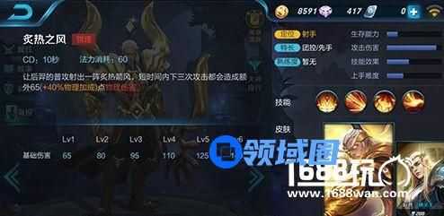 炙热之风:射出一阵炙热箭风,短时间内下三次攻击都会造成额外物理伤害。速攻的技能,作为ADC的优势就是攻速高,爆发强。在大招或者2技能之后配合释放,效果更好。