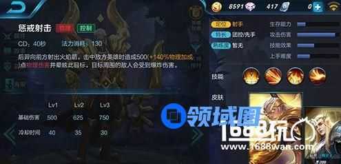 惩戒射击:向前方射出火焰箭,全图大招,击中目标造成伤害且眩晕,目标周围敌人会受到爆炸伤害。全图大招,辅助、收割利器。不用解释,基本都是有了就方一波,但是放之前要先看好敌人位置。缺点是只能走直线,容易被躲避。所以在团的时候效果更佳。
