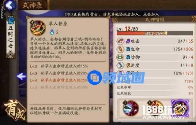 消耗2火召唤一个草人与敌方某个单位链接,草人受到的伤害会全额转嫁给本体,满级的情况下草人会继承本体30%的生命和50%的防御。乍一看这不就是直接削弱目标50%防御么!在后期高防的情况下50%的减防可以让敌方最肉的式神一样变得可以突破。但是,其实还没有结束,草人的强大还远不止这样。下面来解释一下草人的几个特点:
