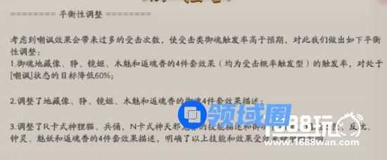阴阳师体验服对嘲讽与御魂效果触发的关系进行了调整削弱,嘲讽式神的御魂触发概率被大大降低,返魂香兵俑、狰狸猫等嘲讽式神遭到削弱。下面一起来看看具体的内容。