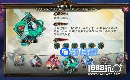 解释说明:只要是对面的式神“被嘲讽”,我方全体携带地藏像、狰、镜姬、木魅和返魂香御魂的效果触发概率降低60%。