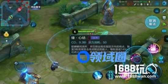 2技能 缘·心结(这是貂蝉能够在团战中穿梭的位移技能,能够配合1技能和3技能快速打出被动。)