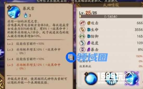 我们要看大招暴风雪的额外减速效果增加10%的冰冻概率,正式服的雪女需要配合雨女或其他减速式神才可以触发这个效果。