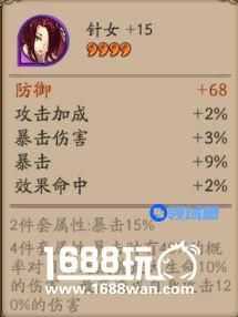 选择御魂之前,我们要清楚套装的选择,姑获鸟标配是针女套装,针女套装属性+15%暴击。