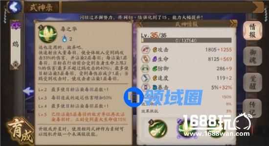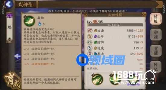 这个式神非常的吃技能,最理想的状态是555,因为需要频繁普攻去打伤害和叠毒。所以养起来会有一定的困难!