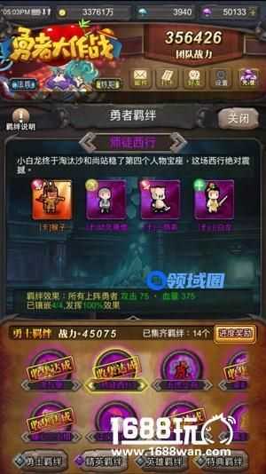 羁绊除了能让你回顾童年,挖掘勇者背后不为人知的故事。最重要的是,它能直接给你带来攻击、血量的提升,从而快速提升战力。而且无需集齐所有勇者,羁绊也能发挥作用。只要获得羁绊中的任意一个勇者,就能开启该羁绊,并获得一定百分比的属性加成。而且当羁绊集成到一定数量后,还有海量钻石奖励可以领取!