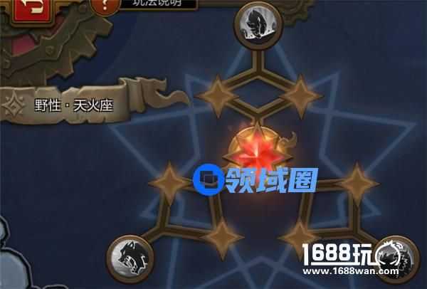以野性·天火座为例,它可以强化野性系宠物为主核的连携技,并且可以大幅度提高角色和宠物的属性。将连携技附近的两个辅星点亮即可强化该连携技。