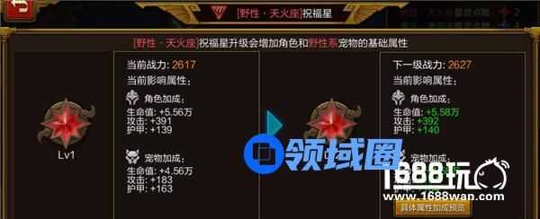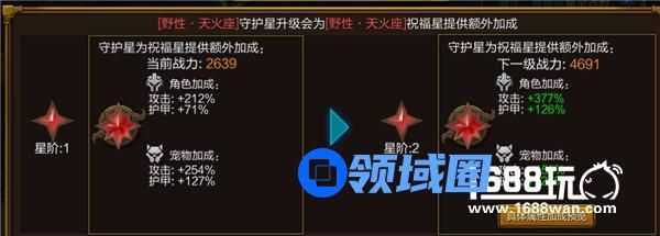 连携技的强化加的战力不算多,可是辅星点亮后升级加的比例非常恐怖,下面会讲到。升级中间的主星可以提高角色和宠物的生命、攻击、护甲,主星升级材料主要从公会地城和发条密室获得,锦标赛给的就不算太多了,毕竟需要打排名。