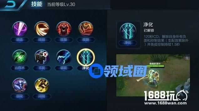 净化时空穿梭的超短冷却时间让诸葛亮不怎么需要闪现,而害怕控制技能,所以我们选择带净化。