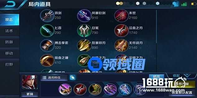 韩信有被动技能的存在,因此不需要太多的攻速装,前期出巨人之握能够提升韩信清野效率,增加的生命值也能够提高他的生存能力;一个打野英雄最重要的就是续航能力,所以我推荐大家第二件就做出泣血之刃来提高续航能力;影忍之足能够增加移速和物抗,提升支援能力的同时减少韩信收到的普攻伤害;暗影战斧则给了韩信一定的生命值,物理穿透,冷却缩减,物理攻击力还有被动技能的留人效果;