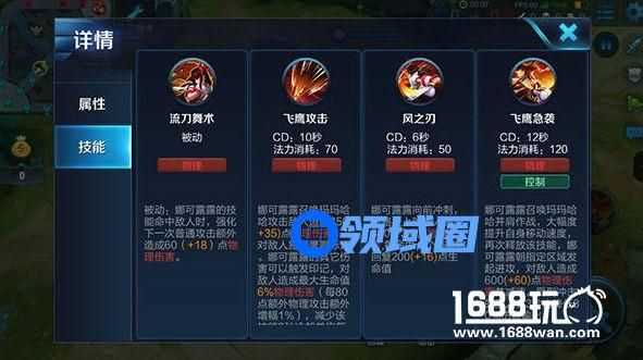 三技能——飞鹰急袭:主要的切入和支援技能,再次释放技能后,可以朝指定区域发起进攻。在释放三技能的过程中是可以释放一技能的,连招可以打出不俗的伤害,而且技能命中敌人后,可以降低敌人的输出,这样可以减少了我方所受到的伤害。