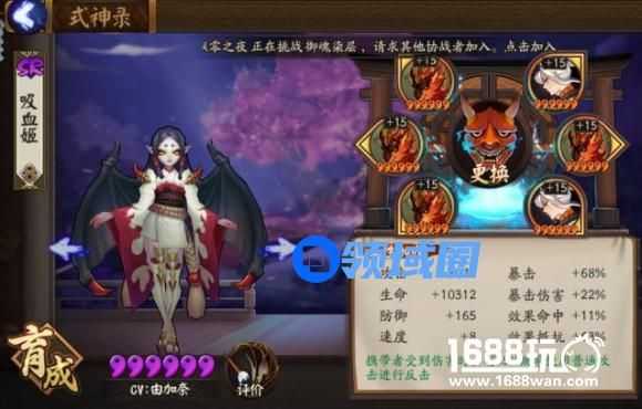 ,楼主带的是攻击暴击。这里会有人说,抵抗难道不重要吗?速度不重要吗?先说速度,吸血姬主要输出靠的是狰反击,那么速度提升主动出手的频率意义就不是那么大,而且你打别人还会触发对面的反击。速度对于吸血姬最大意义