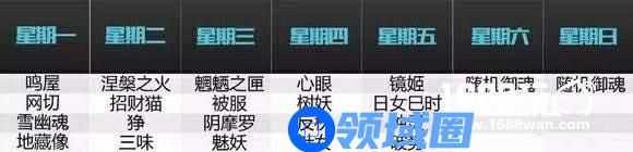 这就是一周内每天的御魂掉落 赶紧对照表格定好闹钟吧