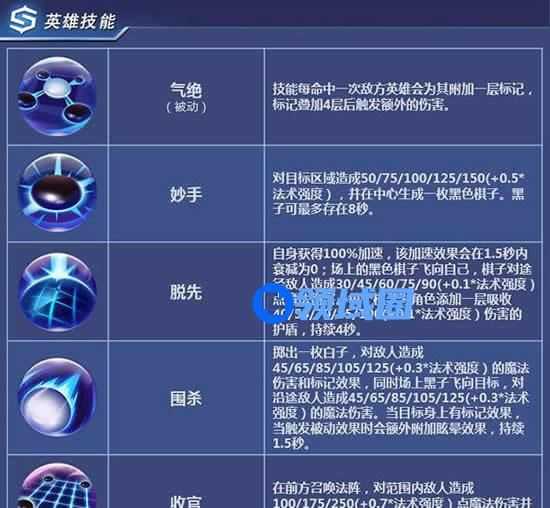 棋仙琪琳是一名擅长远程法术的【法师】,其被动技能【气绝】需要不断释放技能来给同一个目标造成额外的伤害,因此对走位操作有一定的要求。而黑白两色棋子 作为棋仙最关键的武器,可以用【妙手】、【围杀】、【脱先】打出一套技能Combo,给敌人造成成吨的伤害。此外,棋仙的大招【收官】是一个范围群控+伤 害技能,结合【脱先】使用也很犀利。总而言之,这是一名对操作和策略都很有考验的英雄,大神们证明自己实力的机会来啦。